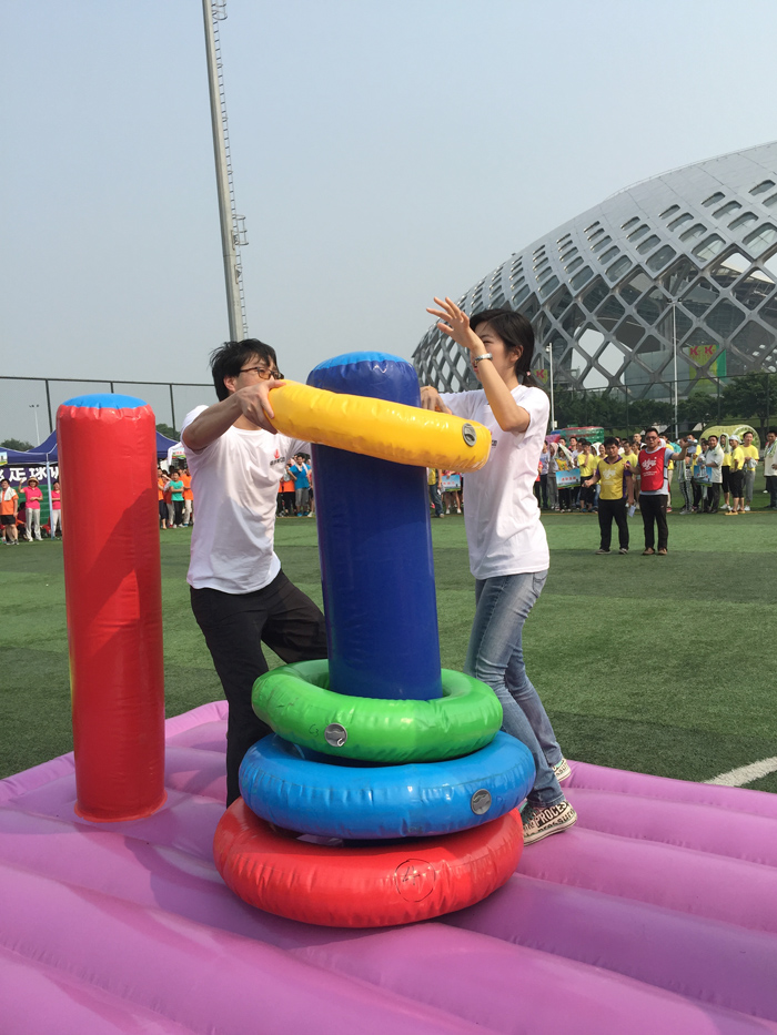 运动会共设置了5个项目,分别为考验运动能力的“奔跑吧!”、考验团队协作与智慧的“智慧汉诺塔”、“梦想起航”和强调团队合作能力的“龟兔赛跑”、“新铁人三项”。