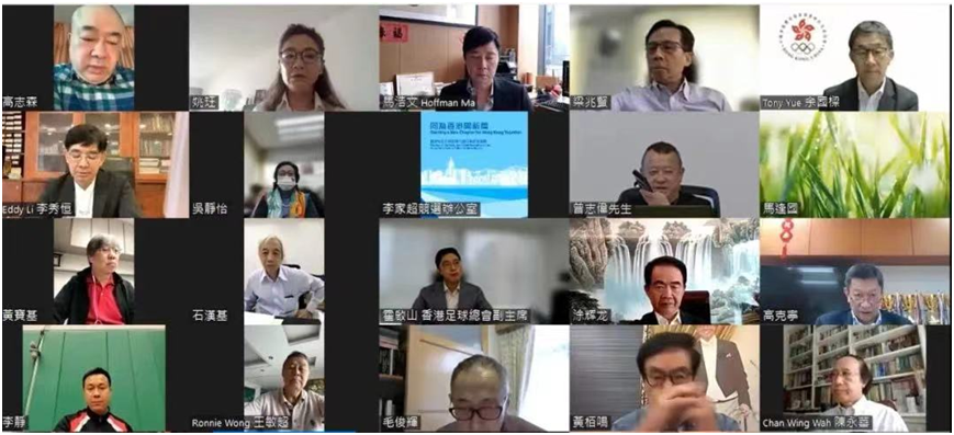 4月20日,涂辉龙主席与40多名来自香港体育、演艺、文化及出版界的选委们一同参加李家超的线上交流会,围绕体育演艺文化出版事业对政府未来的施政方向提出建议。
